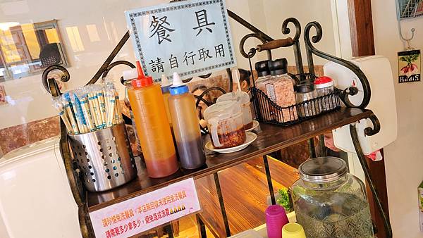 店內採取的是半自助式,點好餐點之後,走到餐具區拿取餐具以及醬料
