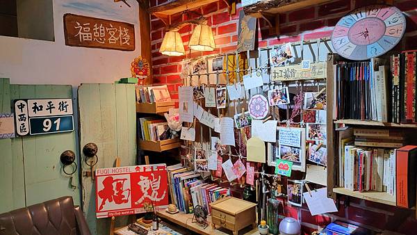 福憩和平館爲六十幾年歷史的老屋重新翻修,由於建物前身是一家鐵工廠,保留原本建築構造後,加入許多創新巧思將福憩打造出獨一無二的風格,有特別用H鋼骨加強結構及採用英倫工業風管線,牆壁與地板有數位藝術家現場彩繪創意佈置,每一處每一角落都充滿復古情懷,也非常貼心提供多元旅遊資訊。