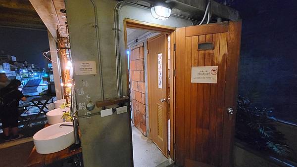 浴室空間也保留了許多老房子歲月的痕跡,最特別吸引我的是鏡子,鏡子是老窗框改造、紅色的磚牆……等等,衛浴雖然很簡約樸實,但整體環境非常乾淨整潔。