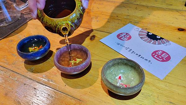 隔天退房早晨,剛好店長有空,福憩背包客棧也有泡茶用具,連茶杯也好美啊…早晨吃完早餐,坐在大廳裡泡茶聊天超愜意。