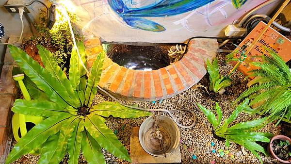 店長帶著我們到最酷的地方,也就是一樓大廳後方可以看到一口清朝到現在的百年古井,水質很清澈裡面還有養魚當天店長還有讓我們倆打水初體驗,原來打水還是有許多撇步,抓到關鍵撇步打水就容易多了,這體驗真的很不錯。