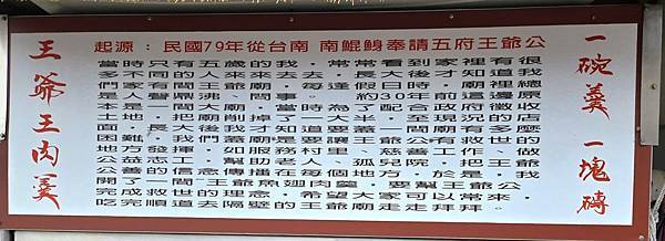攤位外面寫著店家起源歷史,民國79年開始……,大家可以閱讀關於王爺王肉羹簡介