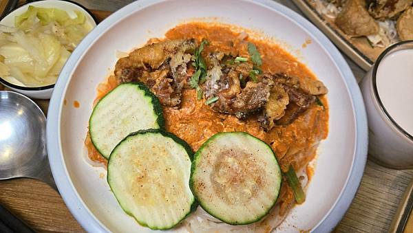梅子生日前開始規劃如何慶生,想來點特別不一樣的美食,在ig滑到許多人推薦的帢凸帢泰古船麵(東山店),主打平價又道地泰式料理,餐點都是現點現做,船麵牛肉配料超多湯頭香醇,紅咖哩都很道地,椒麻雞外酥內嫩美味,份量也足夠,哇!梅子開始心動了。